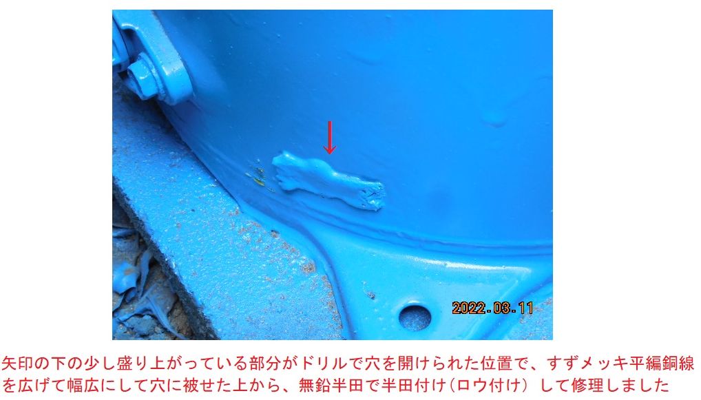 ![]() ![]() 浅井戸ポンプのタンクに、ドリルで直径5mm程の穴を開けて、その穴から入れられる毒物として、毒物に関して素人の私は、鉛の割合の多い鉛糸半田を思い浮かべますが、大量に入れれば、鉛中毒で体が不自由になったり、酷ければ死ぬかも知れません。 毒物に詳しい本件の犯罪者の爺は、ヒ素などの別の毒物をポンプのタンクに入れたかも知れません。 直径5mm程の穴から入れた細長い毒物は、浅井戸ポンプを外して、吸水口や吐出口、ドレーン口などから大量の水を流し込んでも排出できないので、飲用や台所用の水として一切使えません。 台所の水道では洗髪し難いので、日課にしている早朝の洗髪を台所の外に有る「流し台」の自家水道のホースの水でして、急いで台所の水道で顔を洗い直して、口も、すすいでいましたが、自家水道から台所の水道に移動する僅か二、三秒の間でも目に沁みるので、同じ「流し台」にある市の水道のホースの水で洗髪するようにしました。 自家水道の水は年間を通して水温がほぼ一定ですが、市の上水道の水は気温に大きく左右され、冬は手が痛いぐらいに冷たく、夏は生ぬるく、今の時期は自家水道の水より少し冷たいですが仕方ないです。 ![]() なお、水質検査をすれば、浅井戸ポンプのタンクの中に、どんな毒物が入れられている容易に分かります。 2022/02/15日頃に、我が家の自家水道の浅井戸ポンプのタンクの底部の側面の地面が水で濡れている事に気付きました。 最初は、気温の変化や水温の変化による浅井戸ポンプ本体の結露で、タンクの底部の側面の地面が水で濡れているのかもと思いましたが、日増しに、タンクの底部の側面の地面の水濡れが酷くなってきました。 浅井戸ポンプのタンクの底部の側面の地面の水濡れが酷くなる一方なので、水濡れの原因と思われる個所の、タンクの底部の側面の溶接部分を乾いた布で拭いて綺麗にしてみたら、その個所から、少しづつ水が滲み出ていて、ポンプのタンクから水が漏れている事が判明しました。 少しづつ水が滲み出ていている個所を目を凝らして見ると、溶接部分の少し上から少しづつ水が滲み出ているようにも見えましたが、その個所に傷や穴は全く確認できませんでした。 ポンプのタンクから水が漏れているのが確実なので、金属パテで修理しようと思って、 2022/02/25日に、大手のネット通販サイトで金属パテ(コニシの金属パテ1本)を購入しました。 確かに、在庫有り、即日発送と表示されていたので、翌日の朝、その大手のネット通販サイトからの商品発送メールを確認したら、商品発送メールが見当たらなかったので、本件の犯罪者の爺に買収されている、その大手のネット通販サイトの商品発送部門の関係者が、毎度の事で、爺に指示されて故意に商品を発送しないのだと思いましたが、念の為に一日待って、翌日、再度、商品発送メールを確認したら、商品発送メールが見当たらなかったので、その大手のネット通販サイトの会員ページにログインして、注文履歴の詳細を確認したら、配達会社が、いつもの会社ではなく、ヤマト運輸で、荷物の現在位置が事業所向けの中継基地になっていたので、その商品は放棄して、 直ちに(2022/02/27日)、別の準大手のネット通販サイトで金属パテ(コニシの金属パテ2本)を購入し、更に、念の為、楽天モールに出店している通販会社で、発送の翌日に商品が届く上に送料の安いメール便で送れる同様の商品(粘土パテとマフラーパテ)を別々の通販会社で購入しました。 これだけ買えば、本件の犯罪者の爺に買収されない真ともなネット通販サイトが一つぐらい有るだろうと思いました。 ![]() 2022/02/27日に、浅井戸ポンプの水漏れ修理について記載しているホームページを閲覧して、金属パテで浅井戸ポンプのタンクの穴の水漏れを修理をしても、わずか数時間で、また水漏れしたので、半田付けで修理したとの記載や、 大手のサイトの質問のコーナーに、「質問-浅井戸ポンプのタンクの穴の水漏れを半田付けで修理できますか? 回答-半田付けで充分修理できます」の記載を見て、上の金属パテなどは無駄になりますが、浅井戸ポンプのタンクの穴の水漏れ個所を半田付けで修理する事にしました。 2022/02/28日に、更に、半田付けより強度のある「ロウ付け」に関するホームページや動画サイトを閲覧していて、ロウ付けに関する動画の中に、「オートバイの燃料タンクの穴をロウ付けの要領で半田付けして塞いだ動画」が有り、その動画を見て、浅井戸ポンプのタンクの水漏れを、ロウ付けの要領でカセットガストーチを使って、半田付けで修理する事にしました。 (浅井戸ポンプのタンクの鋼鉄は厚さが有る上に大きくて、熱の放散が激しくて、300Wや500Wの大型の半田ゴテでも上手く半田付けできるか疑問なので、熱出力が2KW以上もあるカセットガストーチを使うことにしました) なお、「ロウ付け」と「半田付け」の違いは、母材と接合する「ロウ材」の溶け出す温度(固