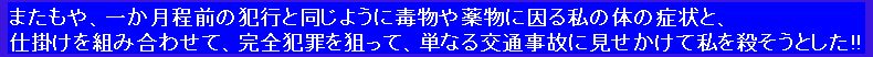 早朝散歩の帰りにガソリンスタンドに寄って、車に積んで来ていた空の灯油のポリタンク二個に灯油を買って来て、犯罪者の爺に毒物や薬物を入れられる危険の無い母屋の玄関のコンクリートの床に保管しました。 なお、空のポリタンクにも毒物や薬物が仕掛けられている危険が有るので、中に台所洗剤を沢山入れてから水を加えて、ポリタンクを様々な方向に振り回して、ポリタンクの中の洗剤液を内部で飛び回らせてから、ポリタンクの中の底まで水道ホースを差し込んで、口から流れ出て来る水から泡が消えるまで水を入れ続てから、ポリタンクを逆さまにして置いて水を切って、中に多少水滴が残っていても比重の大きい水は底に沈むので問題ないと考えて、そのまま灯油を入れる事にしました。 玄関のコンクリートの床(土間?)の面積が広くて、普通サイズの自転車でも置けますので全く邪魔になりません。 ファンヒーターのカートリッジ式の灯油タンクの灯油を全部捨ててから、家の外でファンヒーターを稼働させて、ファンヒーターの内部に残っている灯油も全部燃焼させ切ってから、カートリッジ式の灯油タンクに買って来た灯油を入れて、そのまま30分ほど家の外で稼働させてから、部屋の中で暖房に使ったら、いつも通りに正常で体の異常は全く起こりませんでした。 なお、施錠されていない農業倉庫では、犯罪者の爺に因る証拠隠滅の危険が有るので、その灯油を600CCのガソリン携行缶(ボトル型)と2サイクルエンジン用の混合ガソリンの2L缶の中身を捨てて空にして移して証拠として母屋内に保管しました。 前記の2023年1月25日の朝、散歩中に、農道の十字路を横断しようとした際に、交差した道路を軽トラが走ってきていて、思った以上に速度を出していたので、私は危険を感じて速足にして渡り難を逃れました。 前記の2023年1月26日の朝も、前日に続いて、散歩中に、農道の十字路を横断しようとした際に、交差した道路を前日と同じ軽トラが走ってきていて、思った以上に速度を出していたので、私は危険を感じて速足にして渡り難を逃れました。 上記の二回とも軽トラが走ってきて跳ねられそうになった農道の十字路は同一の十字路で、1月25日は西から東に十字路を横断したのに対して、1月26日は東から西に十字路を横断したという違いだけで、状況は全く同じで、軽トラも同じ軽トラでした。 私の手紙に記載した例の「モータース」が在る交差点の国道(国道257号線)を北から南に横断して、その先の旧国道一号線と国道一号線(◇◇バイパス)の下を潜る地下道を北から南に潜って、その先の農道を直進して南下して行った先を東西に流れる◎◎川の橋の南端と、◎◎川のすぐ南側を東西延びる農道が交差している十字路の交差点です。 その十字路の交差点の周辺には、南側に、農業水道に加圧する為のポンプ場の付帯設備の高さが高くて大きいコンクリート製の貯水プールや、水田跡の芦原が在り、北側にも少し離れていますが、竹藪や農業小屋?、水田跡の芦原が沢山在り、その先の北方にはビニールハウスが在り、東方にもビニールハウスが在り、西方には、水田跡の芦原が在りと、周りからの見通しの悪い十字路の交差点です。 その交差点の東南方向と東北方向以外には近くに畑が無く、農作業中の人の少ない場所で、事故を目撃され難い場所です。 これらの状況は、本件の犯罪者の爺が起こした「この凶悪事件」の時の状況と同じでは。 上記の軽トラが交差する道路を走って来たタイミングは、二日とも「絶妙」で「遅からず早からず」で、もう少しタイミングが早ければ、私は立ち止って軽トラの通過をやり過ごし、逆に、もう少しタイミングが遅ければ、速足にしなくても安全に農道を渡れました。 前記の毒物や薬物の影響で、私がモタツイテいたら軽トラに跳ねられて殺されていたかも知れません。 前記の毒物や薬物の影響で、私が躓いて道路に転んだら、そのまま走って来た軽トラに轢き殺されていたかも知れません。 二日とも、助手席に中年女を乗せていたので、「私が車の直前に出てきた」とか、「私が車の直前で転んだ」とか口裏を合わせて証言して、軽トラのドライバーの過失を小さくして、業務上過失致死での実刑を逃れようとしたのだと判断しています。 周りから目撃され難い場所を選んで、予め、事故の目撃者(証言者)も用意した犯行は「この凶悪事件」の時の状況と同じでは。 なお、上記の軽トラは、可成り過去にメーカーが生産を終了した車種で、この畑作地帯に一台しかないような車種ですので簡単に所有者や同乗者を特定できると思います。 本件の犯罪者との携帯電話での通話履歴や金銭の授受の記録で、「交通事故に見せかけた殺人未遂」が立証されるのでは。 上記の件とは全く無関係ですが、 12月22日に、衣類を買いに行ったら店の「定休日」で、その店と同じ道路沿いに有る農家の無人販売所が、今どうなっているか見てみようと、その道路を二往復して見ま